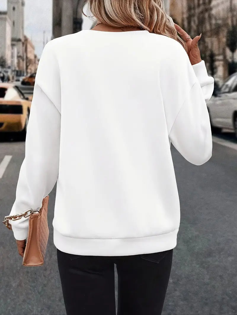 Feline | Motivational Print Sweater is designed for women who love to wear positivity with confidence. Featuring the uplifting quote “Never give up because great things take time”, this sweater combines casual comfort with a meaningful message. Perfect for relaxed weekends, coffee runs, or layering under your favorite jacket.